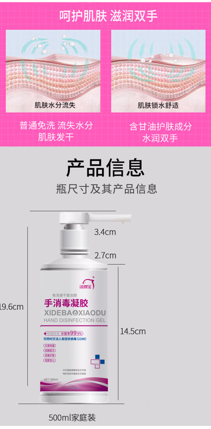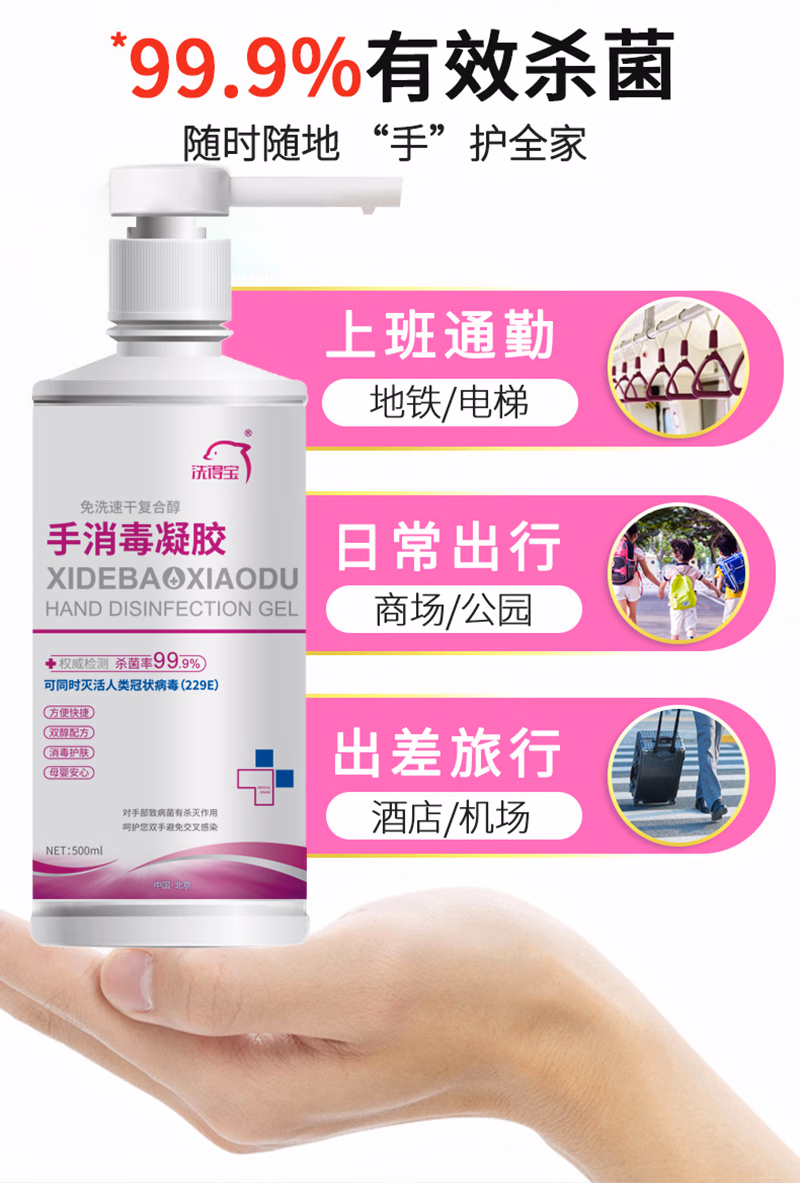 洗得宝 酒精免洗洗手液 免洗手消毒液 500ml 手消毒凝胶 (计价单位:瓶)