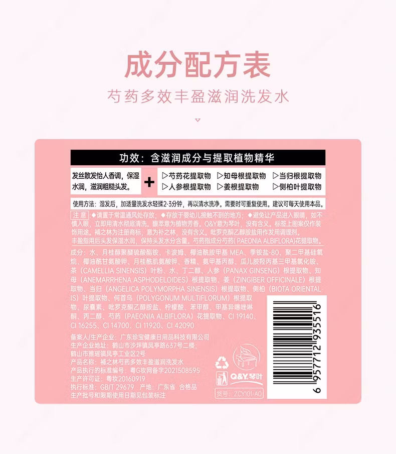 琴叶 芍药丰盈滋润 1000ml/瓶 洗发水 (计价单位:瓶) 黑色