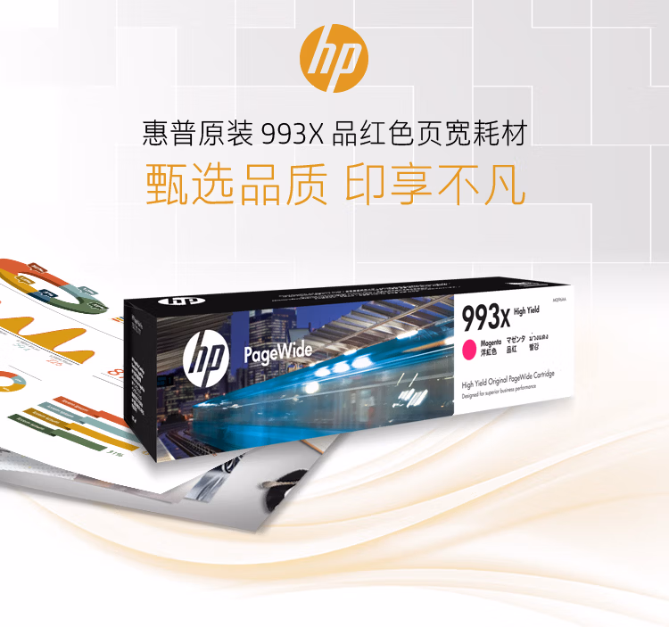 惠普原装 993X 品红色页宽耗材 *平均打印覆盖率基于ISO/IEC 24711 |
