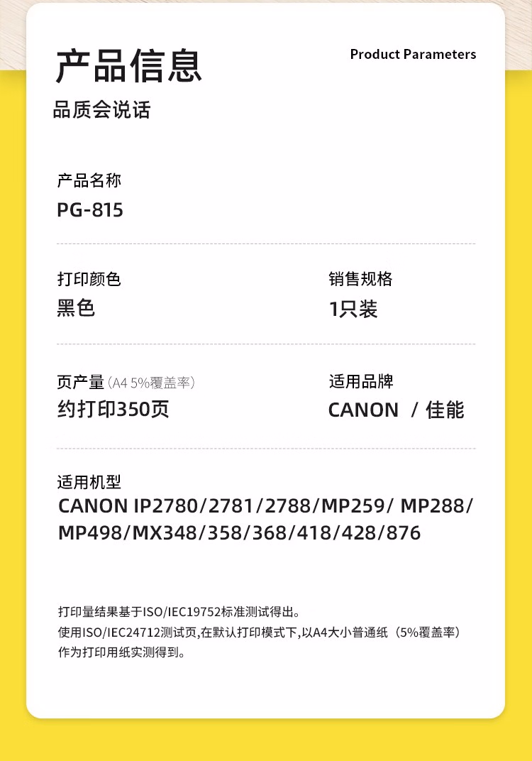 科思特 PG-815 打印量400页 适用佳能 iP2780 MP288 MP236 墨盒 (计价单位:盒) 黑色