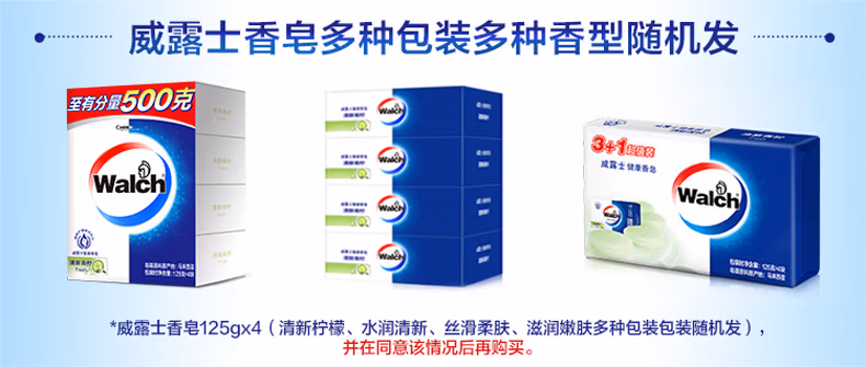 威露士(walch) 滋润嫩肤 125g/块 健康香皂 4.00 块/组 (计价单位:组)