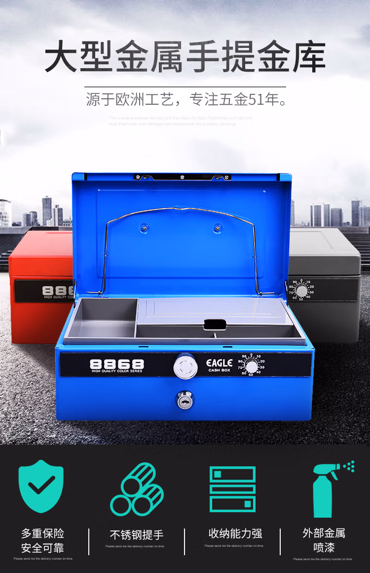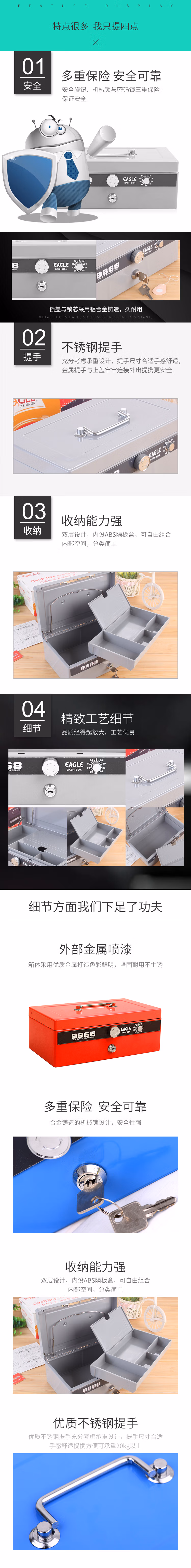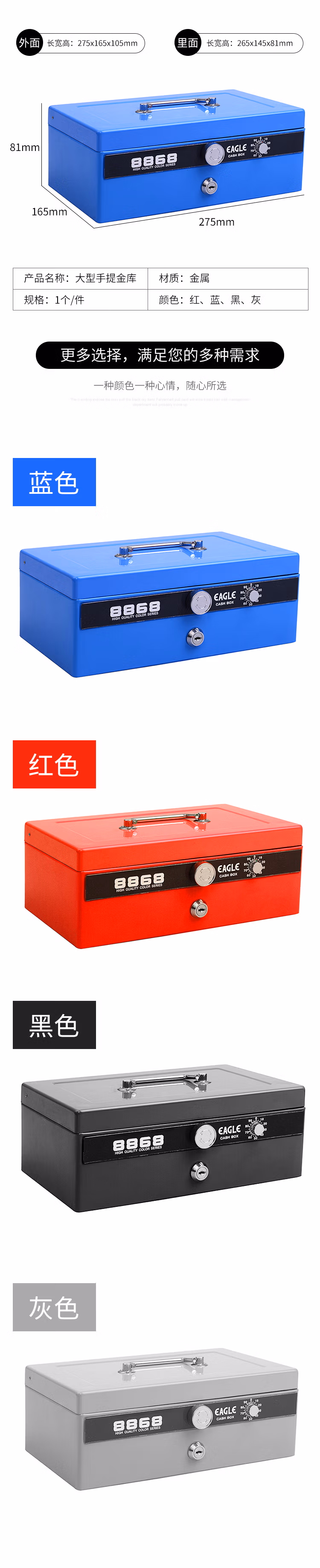 益而高(EaGLE) 8868 275*165*105mm 特大型 金属 手提金库 (计价单位:个) 灰色