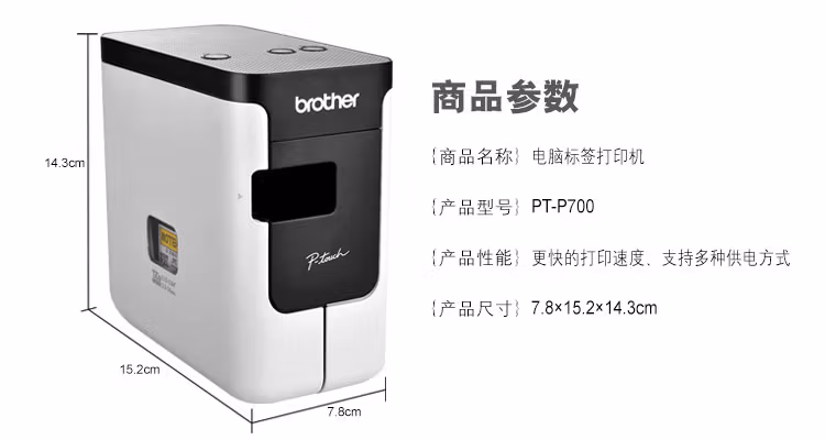若要制作内容更丰富的标签,请安装P-touch Editor编辑软件。该软件可以实现在标签中添加条形码、图片(如:公司logo,指示性标志),并能连接数据库,打印批量的标签。