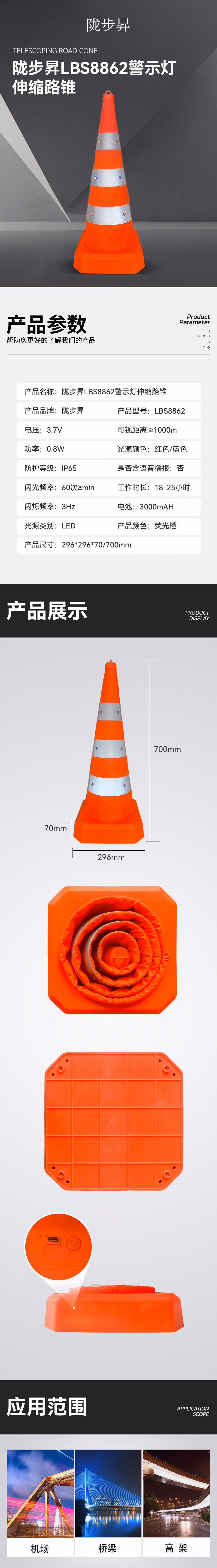 陇步昇 LBS8862 0.8w 3.7v IP65 LED 警示灯 (计价单位:盏) 荧光橙