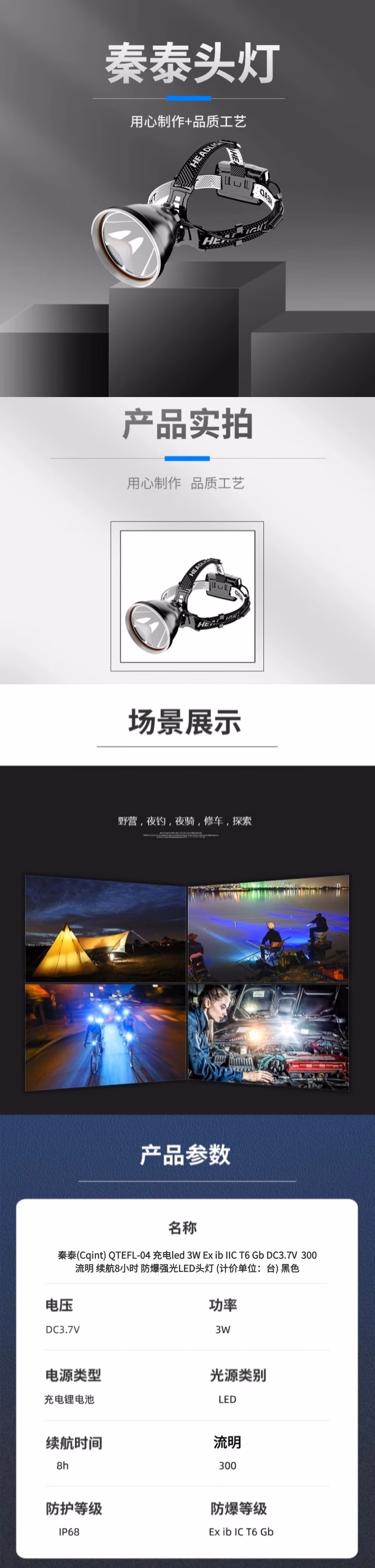 秦泰(Cqint) QTEFL-04 充电led 3W Ex ib IIC T6 Gb DC3.7V 300流明 续航8小时 防爆强光LED头灯 (计价单位:台) 黑色