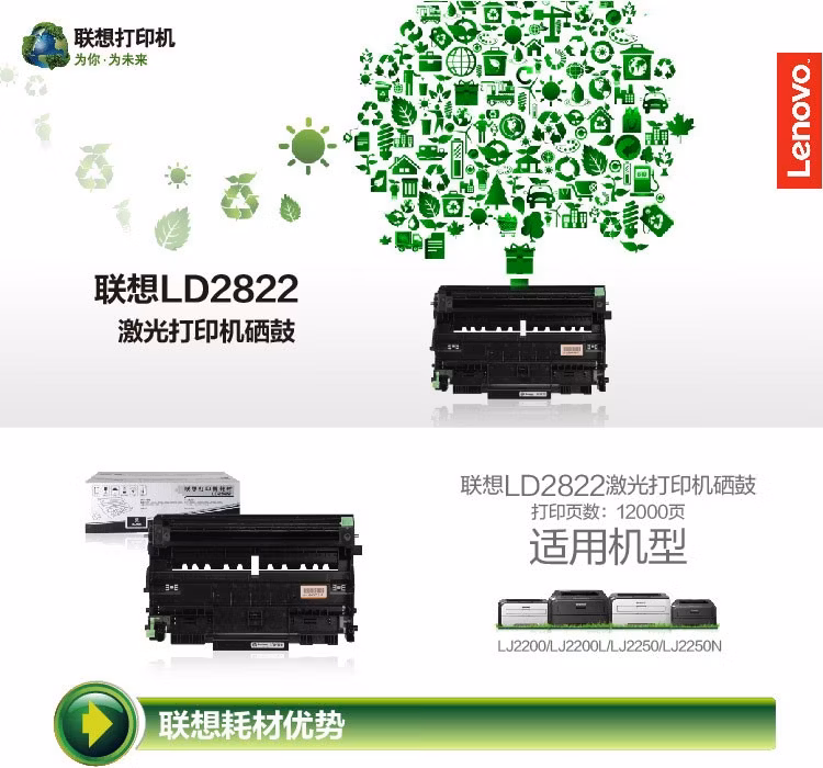 联想(Lenovo) LD2822打印量12000页适用LJ2200/LJ2200L/LJ2250/LJ2250N 硒鼓 1.00 只/支 (计价单位:支) 黑色