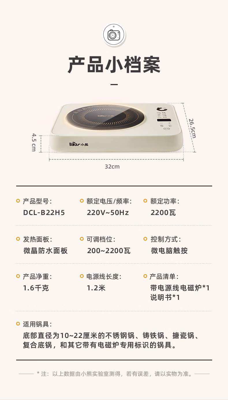 小熊(Bear) DCL-B22H5 电磁炉 (计价单位:台) 米白色