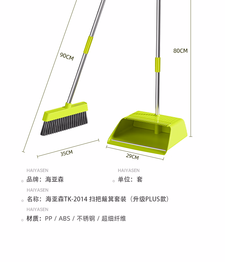 海亚森 TK-2014 扫把90*35cm 簸箕80*29cm 扫帚 1.00 把/套 (计价单位:套) 绿色