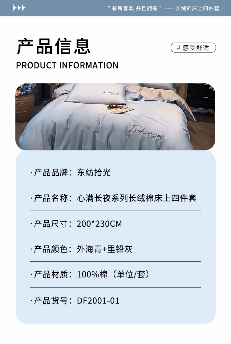 东纺拾光 DF2001-01 200*230cm 床上套件 (计价单位:套) 海青+铅灰