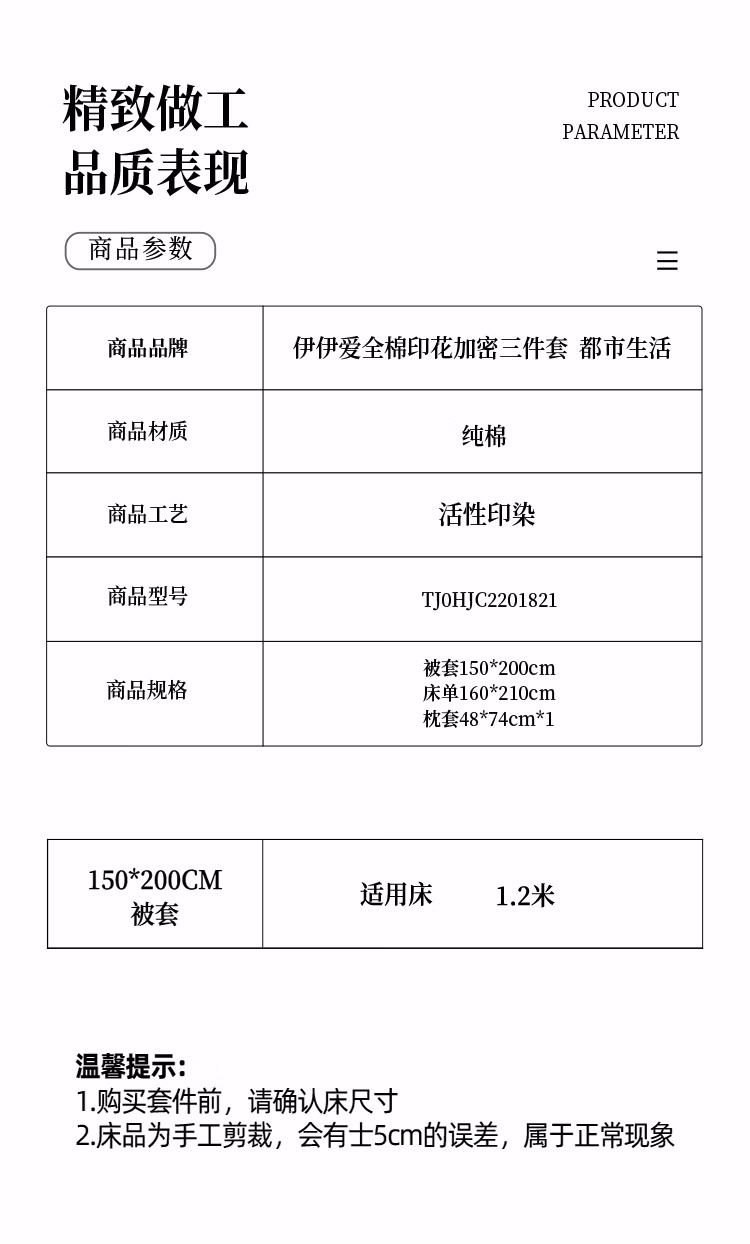 伊伊爱 TJ0HJC2201821 /150*200cm 全棉印花加密三件套 (计价单位:套) 都市生活