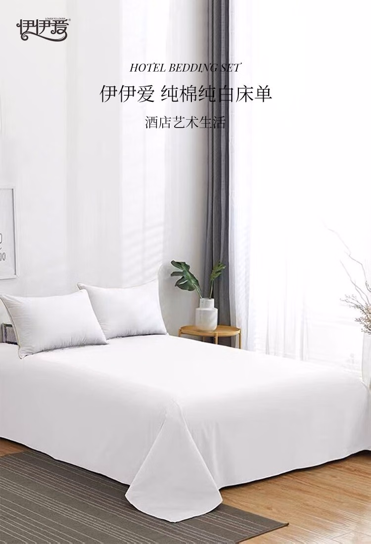 伊伊爱 YDJD0230367 300*300cm 60*80S喷气全棉贡缎纯白床单 (计价单位:件) 白色