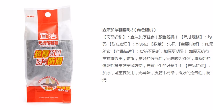 宜洁(yekee) Y-9663 无纺布加厚 6只/包 一次性鞋套 (计价单位:包) 灰色、蓝色