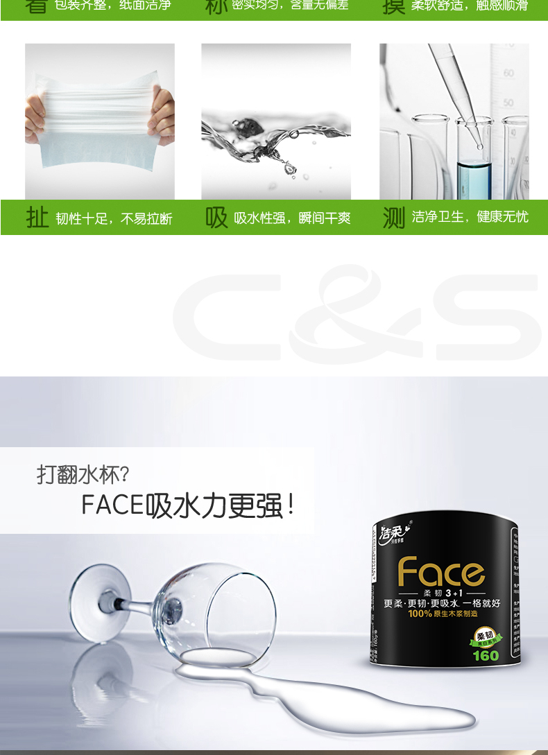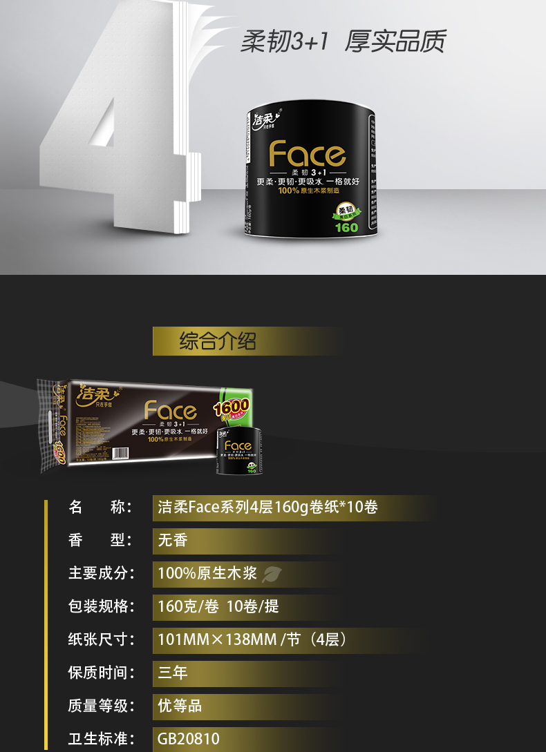 洁柔(C&S)Face卫生纸有芯卷纸4层160g*10卷整提装 单位:提 5提起订