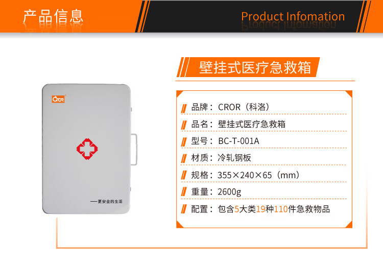 科洛(CROR)BC-T-001A 壁挂应急箱实验室用急救药箱 企业工厂办公医疗箱小号壁挂急救箱 可定制 单位:个