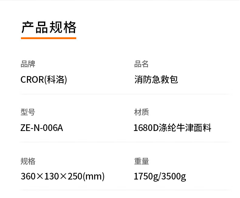 科洛(CROR)ZE-N-006A(消防)消防应急包急救包医疗包 单位:个