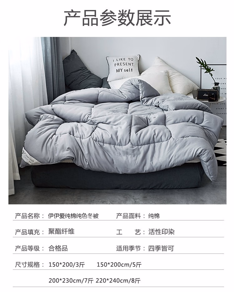 伊伊爱 Z01900029 200*230cm 全棉简约纯色 秋冬被保暖被芯 1.00 件/条 (计价单位:条) 简单白