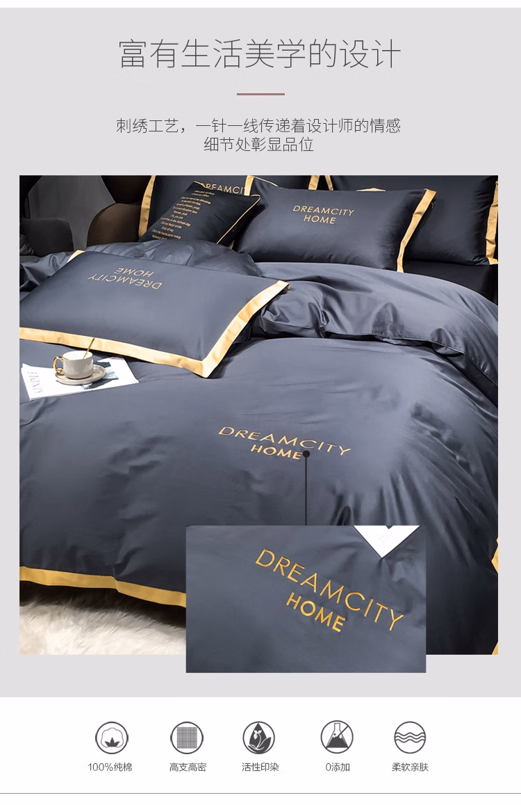 伊伊爱 TJ0NH02000334 150*200cm全棉40S绣花 三件套 (计价单位:套) 蓝灰