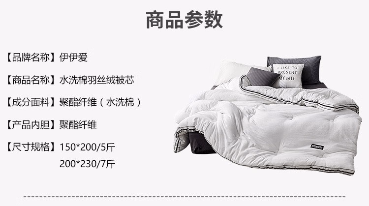 伊伊爱 DB-8XWB-005 200*230cm 芯动系列 水洗棉 秋冬被子 棉被 1.00 件/条 (计价单位:条) 心动灰