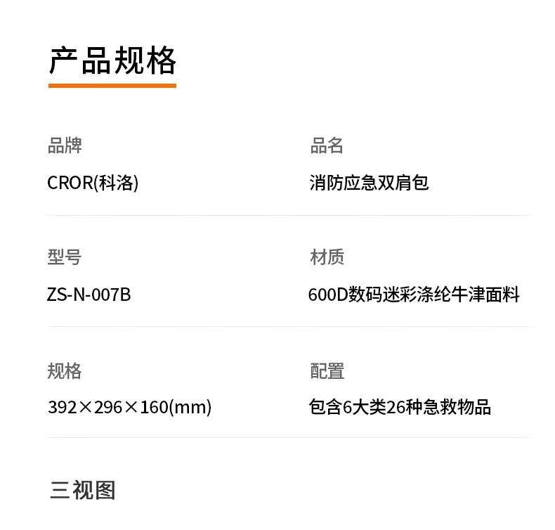 科洛(CROR)ZS-N-007B 防灾救援急救包双肩应急包套装 消防应急双肩包 单位:个