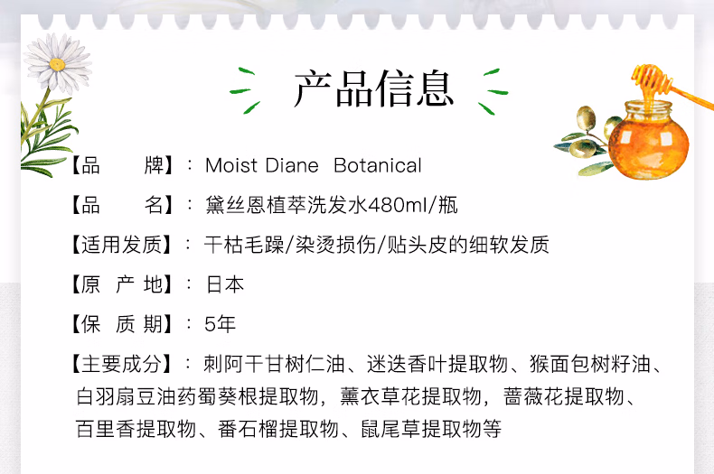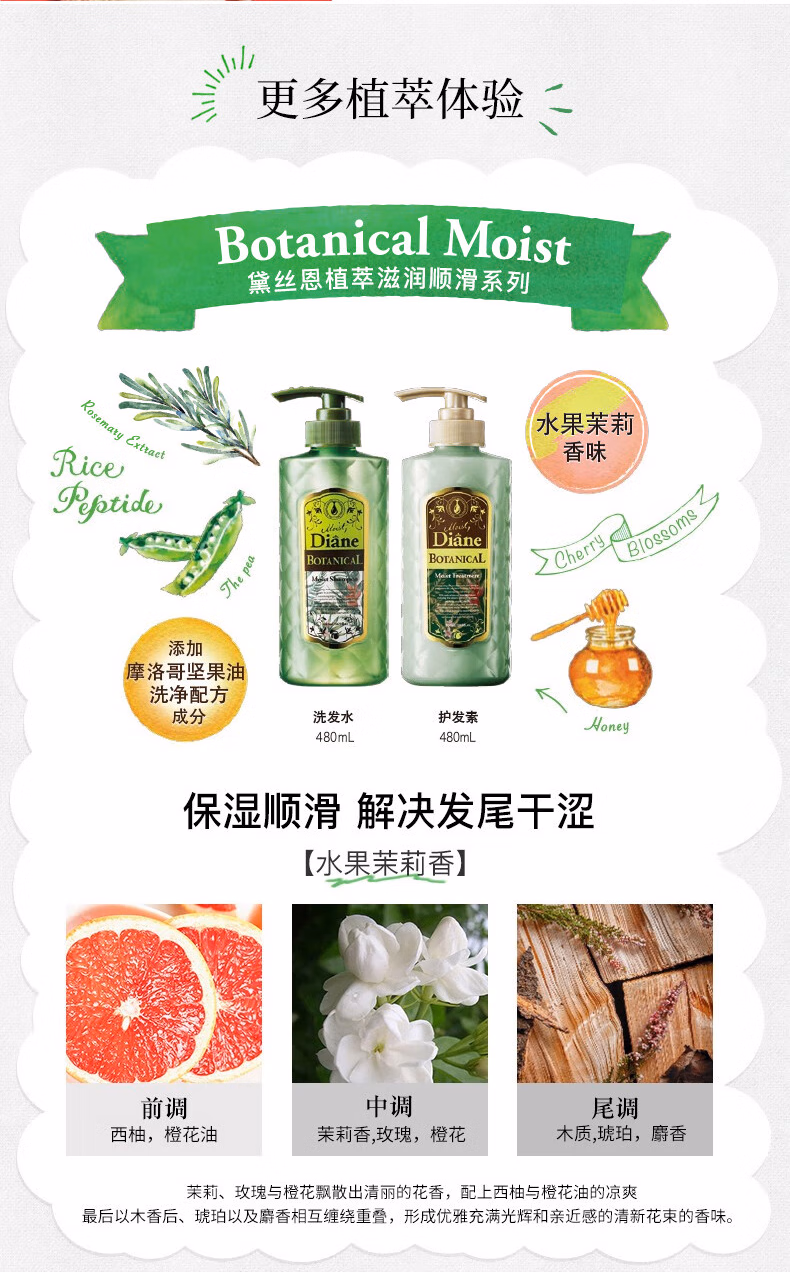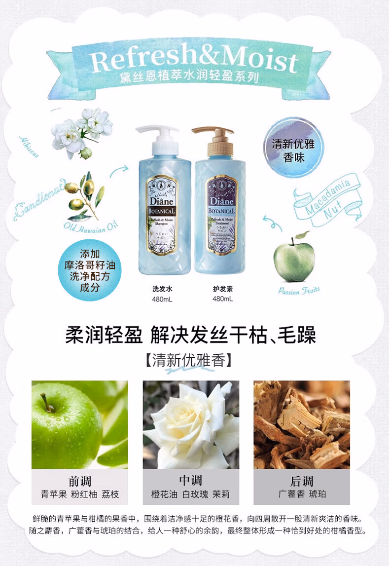 黛丝恩(MoistDiane) 滋润亮泽型 植萃护发480ml 护发素 (计价单位:瓶)
