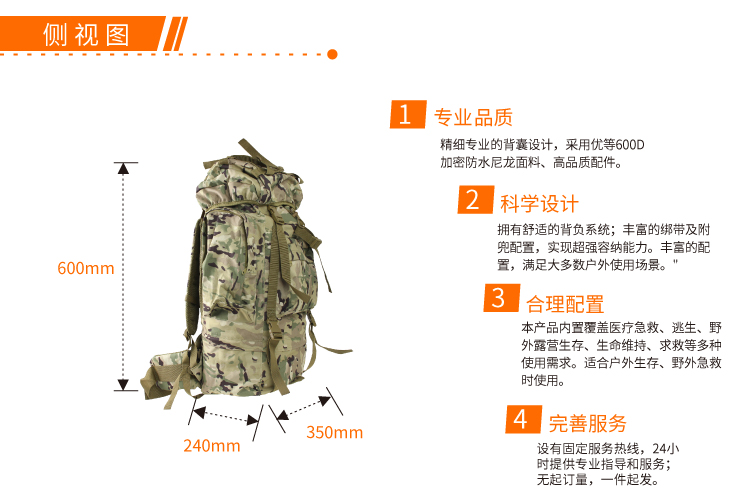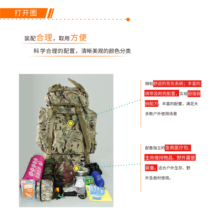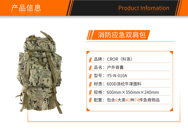 科洛(CROR)YS-N-010A 大容量户外应急背囊 急救逃生生命维持野外求救户外生存急救包 可定制 单位:个