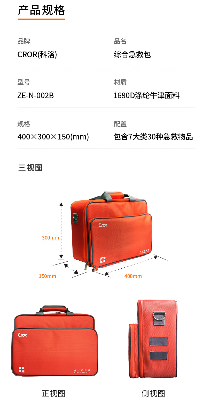 科洛(CROR)ZE-N-002B 救护车医院急救中心内科出诊包 院前诊疗急救包 单位:个