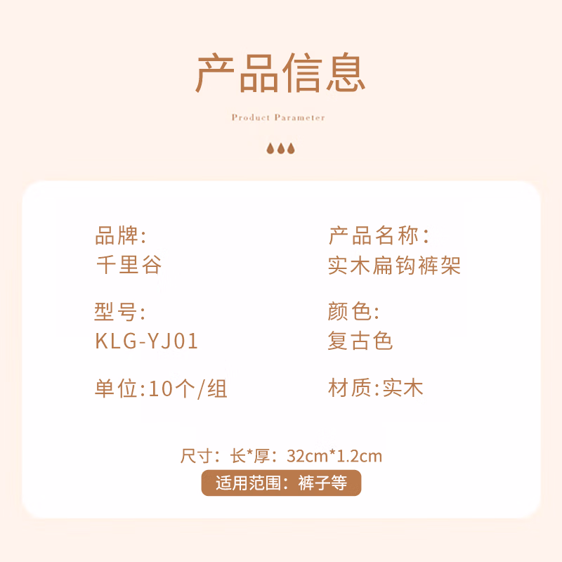 千里谷 KLG-YJ01 实木扁钩裤架 10个/组 衣架 10.00 个/组 (计价单位:组) 复古色