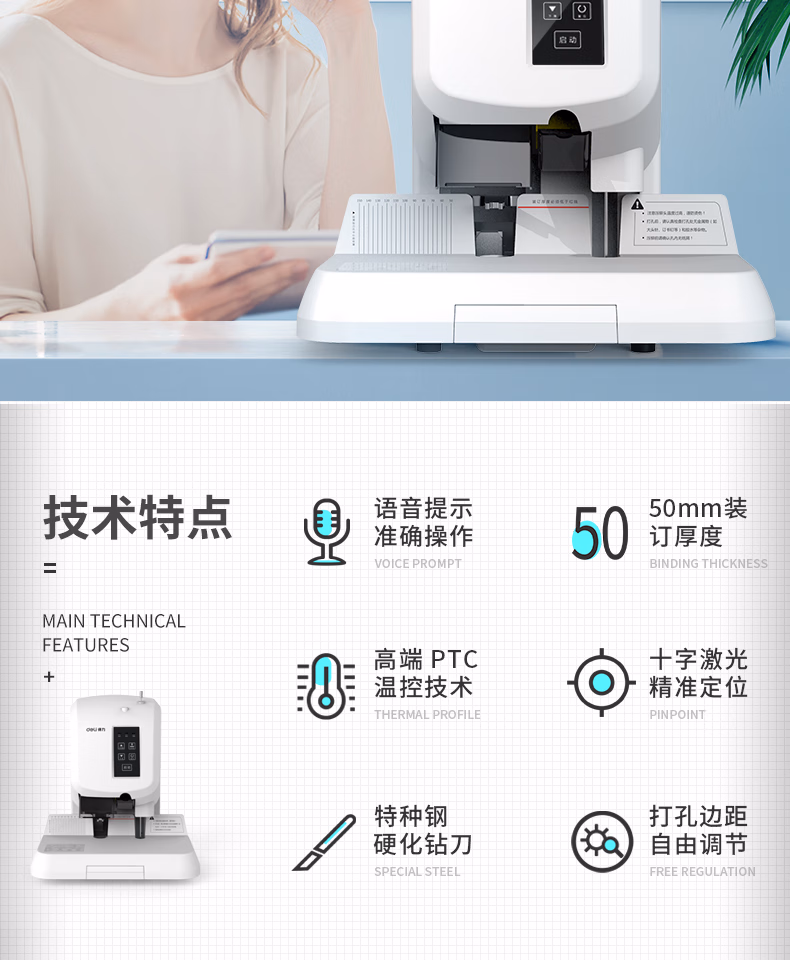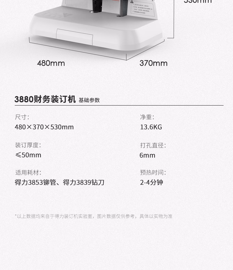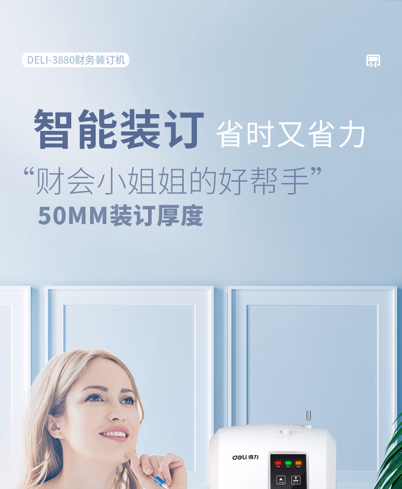 得力(deli) 3880 钻头尺寸φ6*50mm 激光 智能自动 财务凭证装订机 (计价单位:台) 灰白色