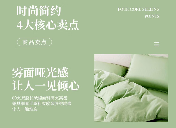 伊伊爱 TJ0WL02201554 /200*230cm水洗哑光长绒棉薄荷绿纯色四件套 床上套件 (计价单位:套) 薄荷绿
