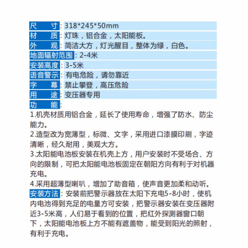 蓉益驰 RYC5674A、3.6w、IP65、5.5V、白光、6500K 太阳能语音标志灯 (计价单位:盏) 白色