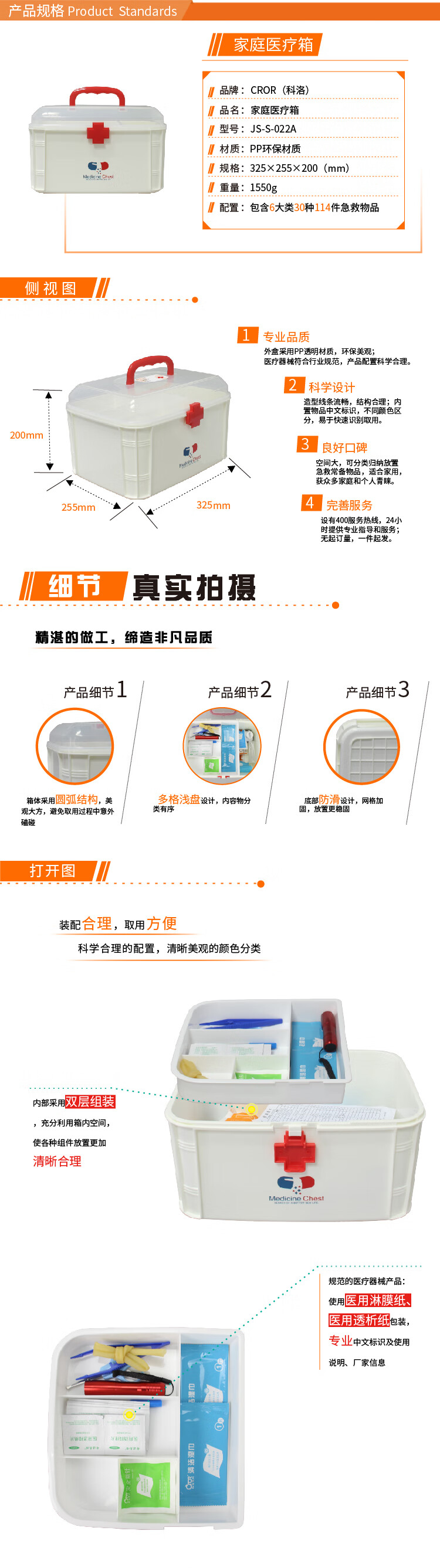 科洛(CROR)JS-S-022A 药箱医疗护理箱家庭医药箱急救箱 白色 环保PP材质 单位:个