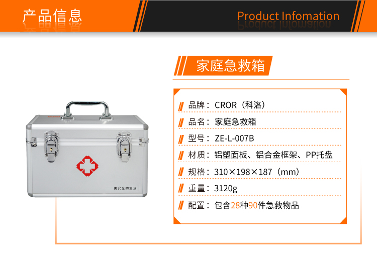 科洛(CROR)ZE-L-007B 医疗应急箱医药箱工厂企业急救药箱套装中小学急救箱 单位:个