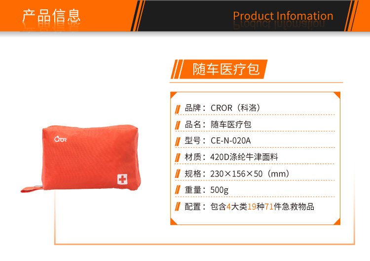 科洛(CROR)CE-N-020A 车载便携急救包车用家庭户外应急包 随车医疗包CE-N-020A 单位:个
