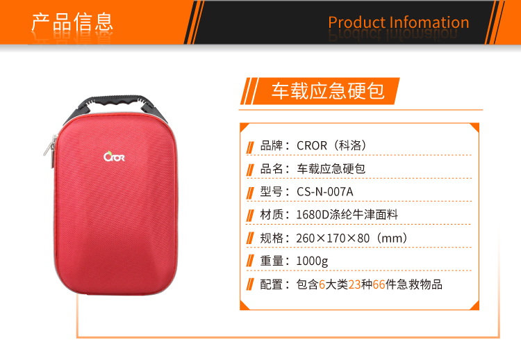 科洛(CROR)CS-N-007A 车载应急硬包 家庭自驾游车用出行急救包 单位:个