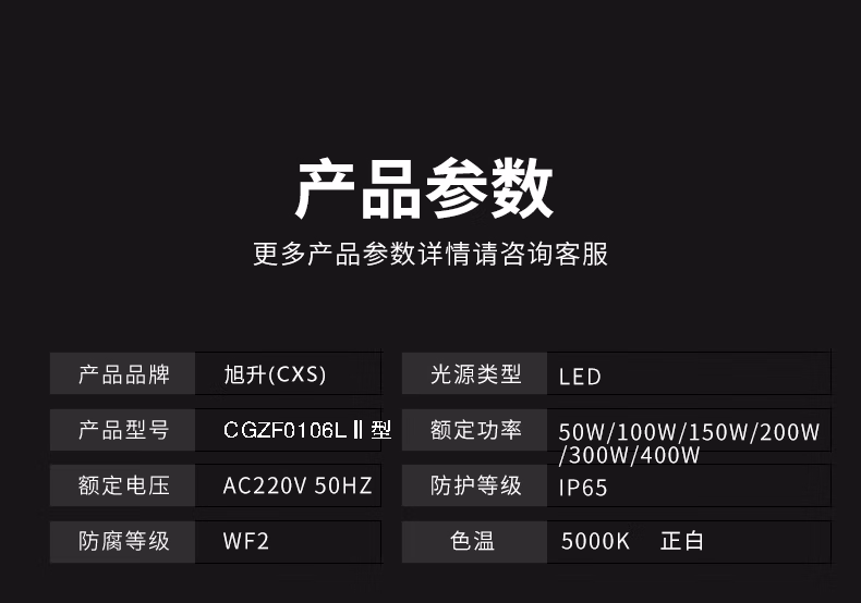 旭升(CXS) CGZF0106L II型 300W IP65 AC220V 白光 色温5000K LED投光灯 (计价单位:个) 黑色