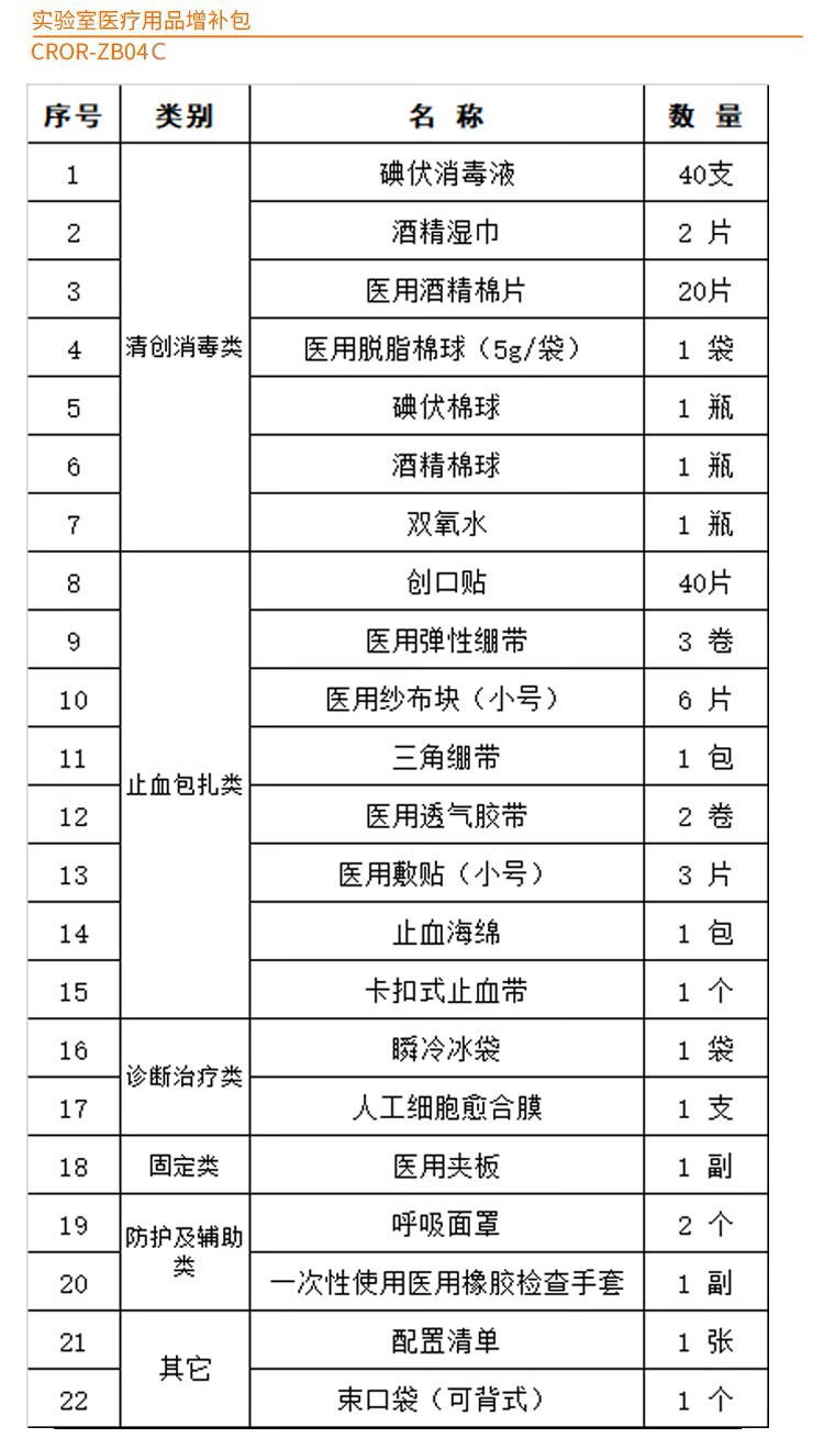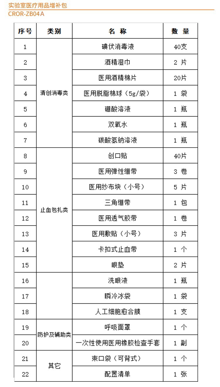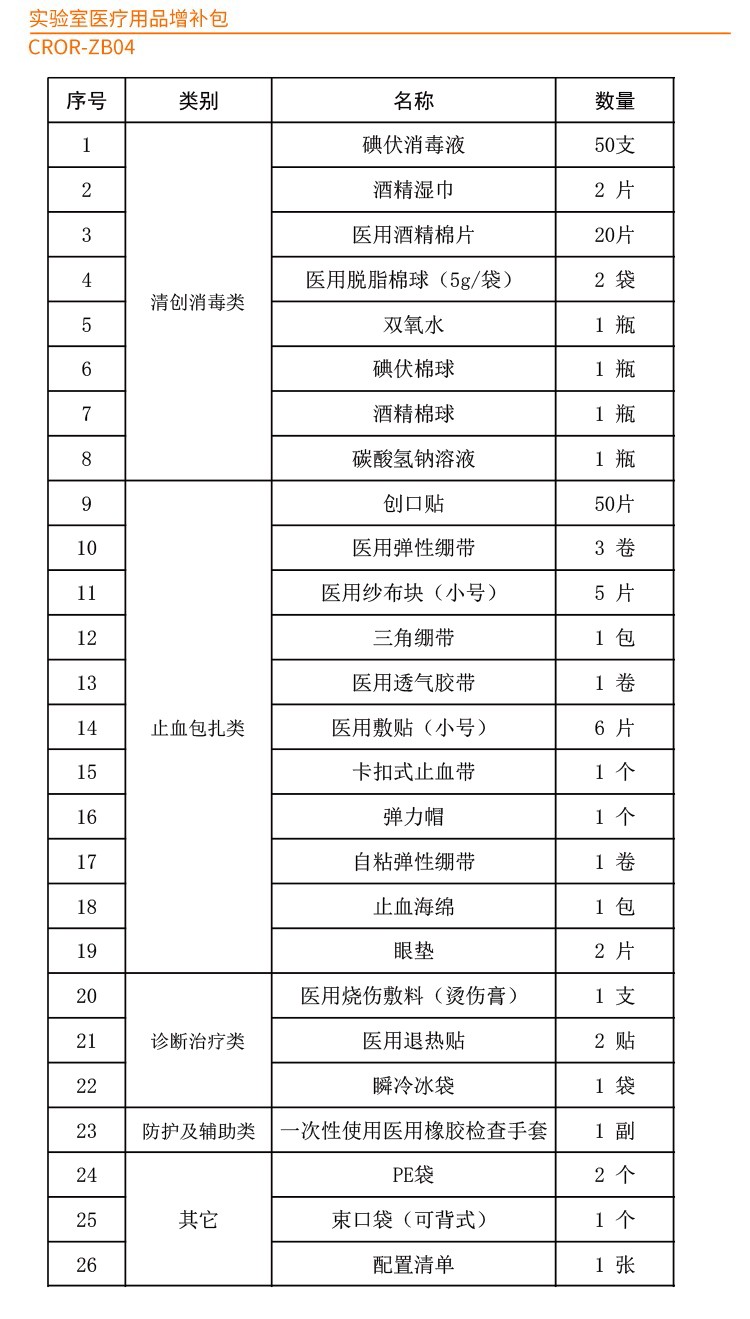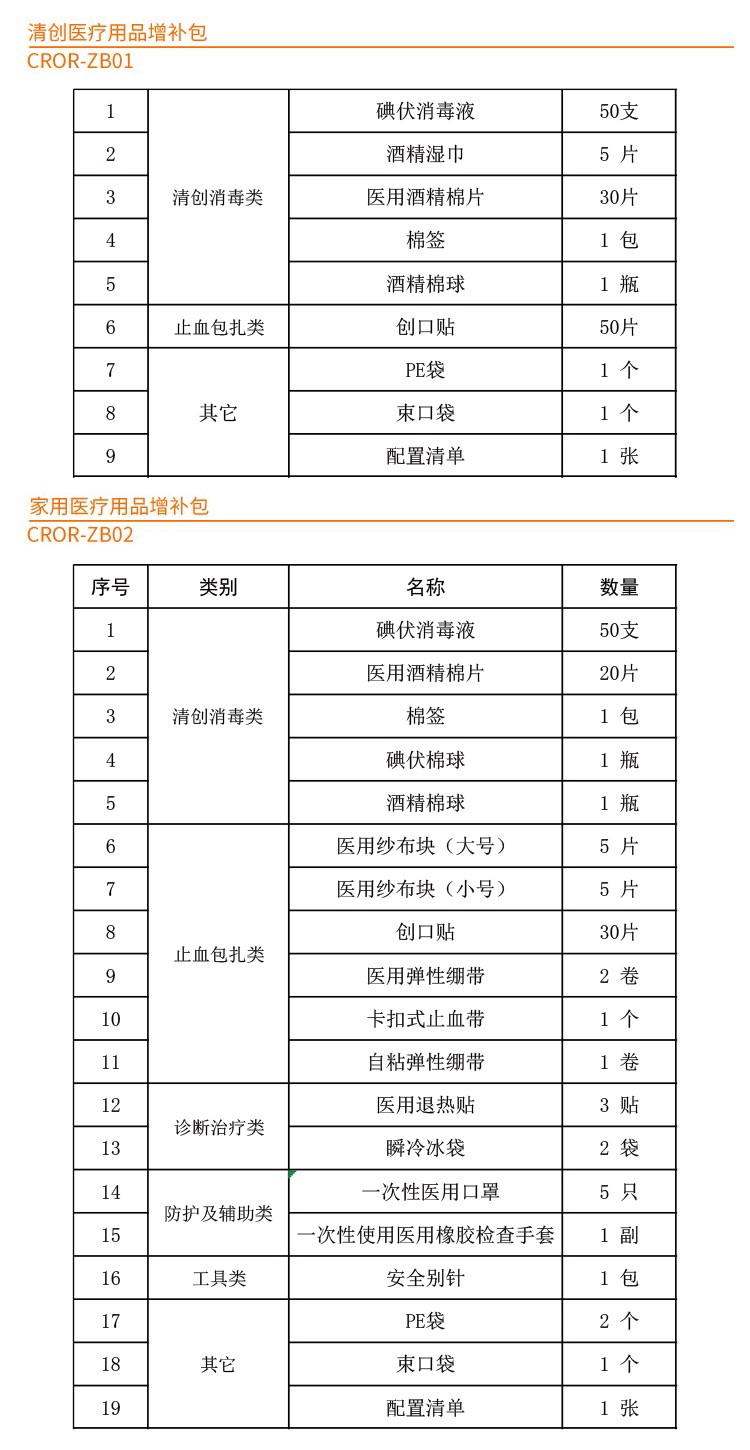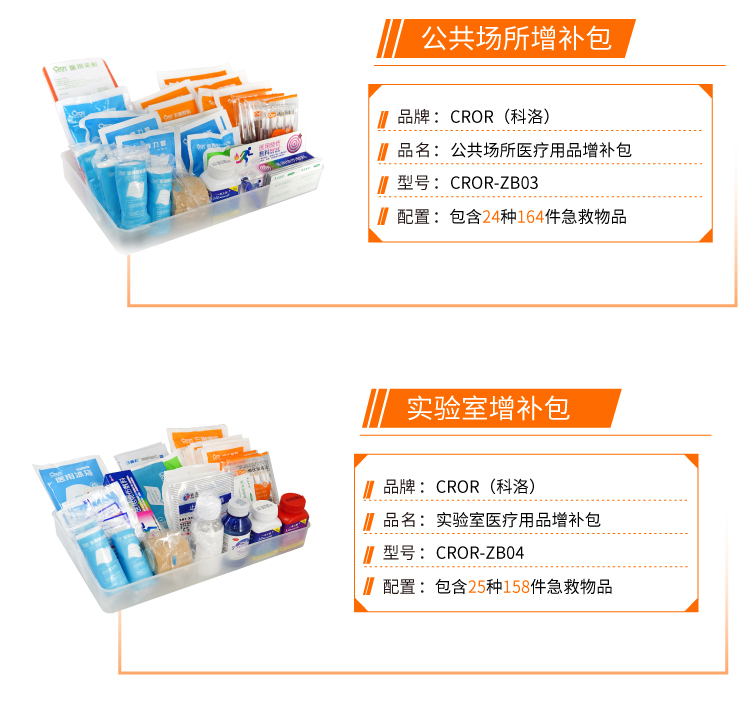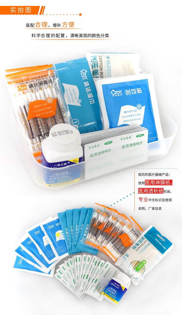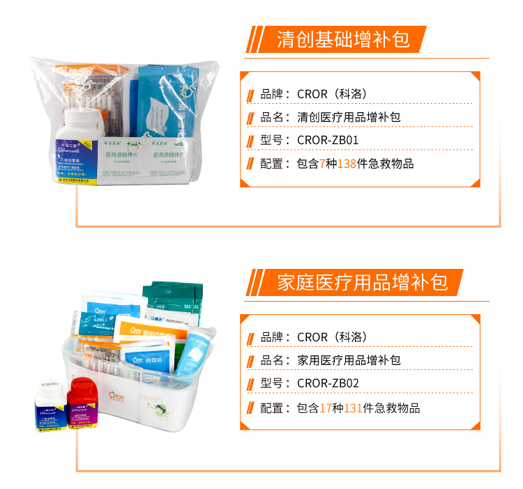 CROR科洛增补包 家庭日常消毒防护组合装(含酒精棉等)户外公共场所学校实验室急救箱急救用品补充装 家庭增补包 ZB02 单位:包