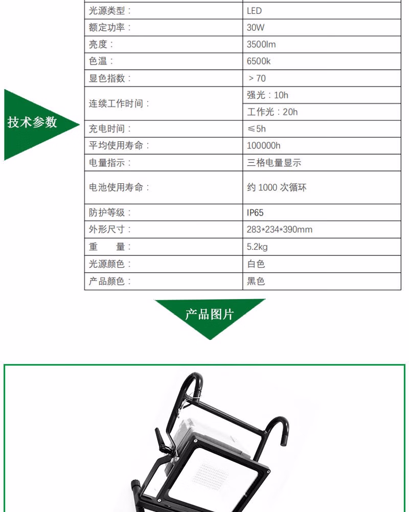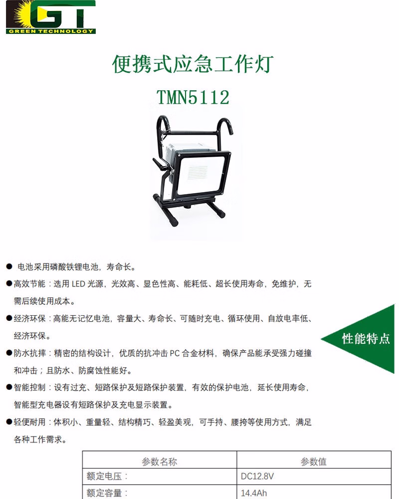 吉特(GT) TMN5112 30W IP65 强光10h 电压12.8V 白光 LED 便携式应急工作灯 (计价单位:盏) 黑色