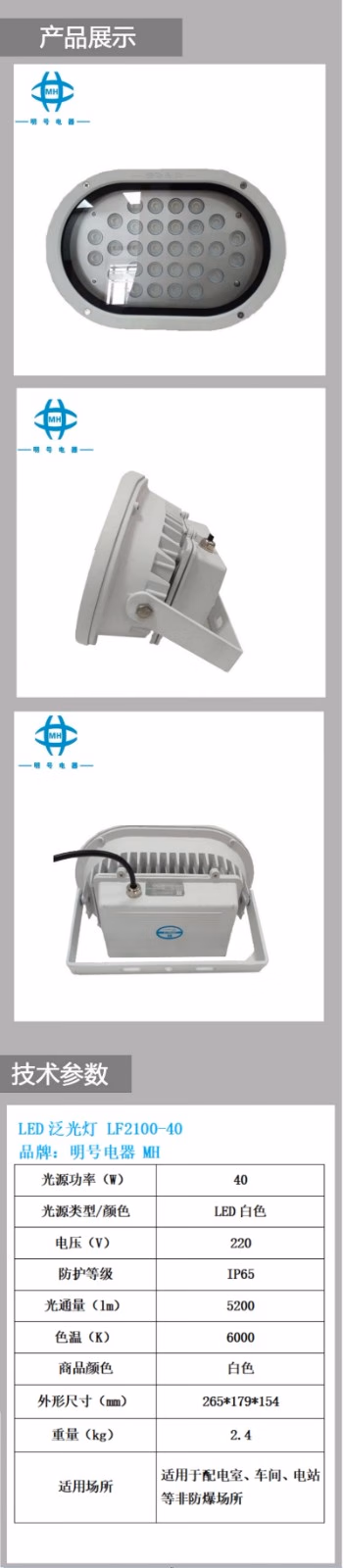 ③.光通量5200lm。④.功率:40W。⑤.重量:2.4KG。⑧.尺寸:265*179*154mm。