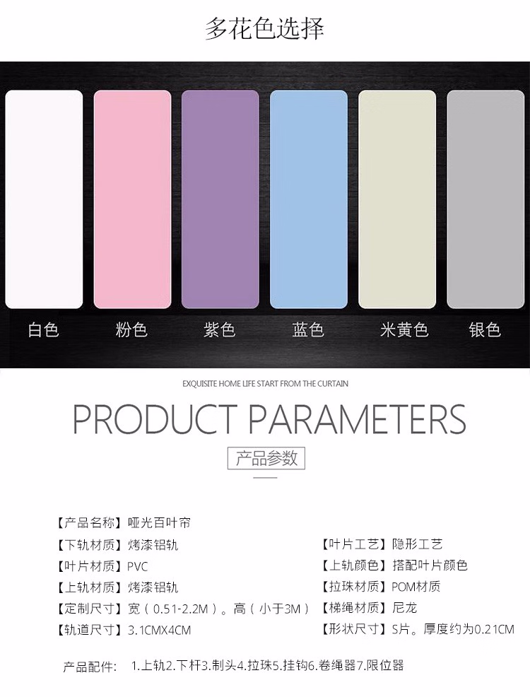 伊伊爱 CL0LJ02000035 哑光PVC 含配件 百叶帘 1.00 米/片 (计价单位:片) 多色