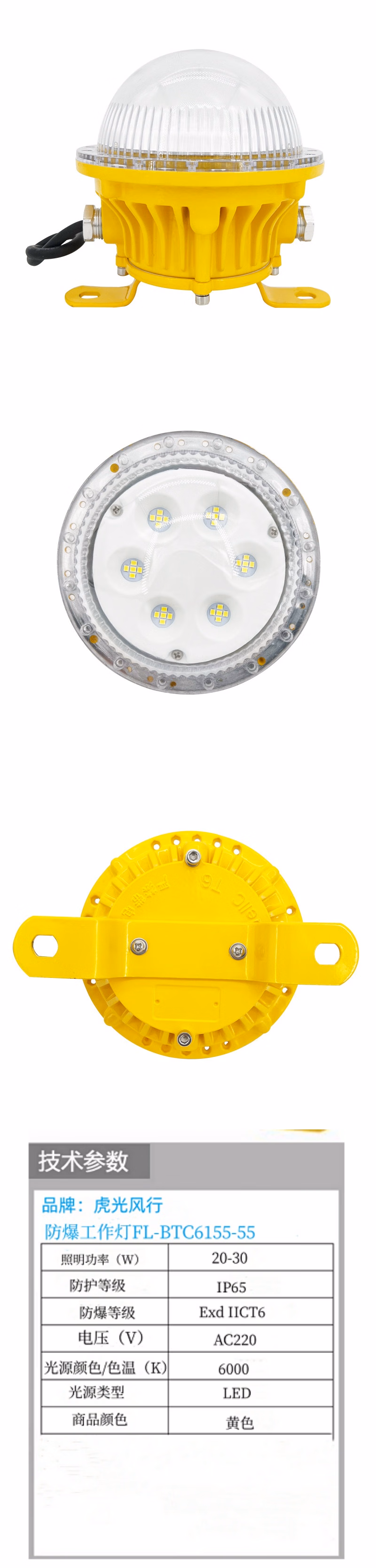 虎光风行 FL-BTC6155-55 照明功率20-30W 防护等级IP65 防爆等级Exd IICT6 电压等级AC220V 光源颜色/色温6000K 光源类型LED 防爆工作灯 1.00 盏/台 (计价单位:台) 黄色