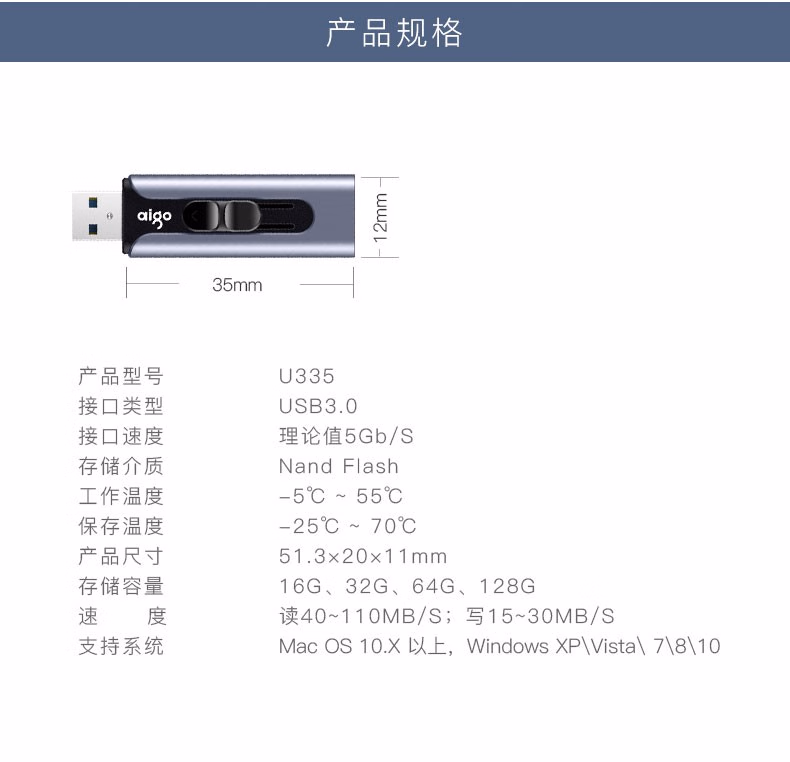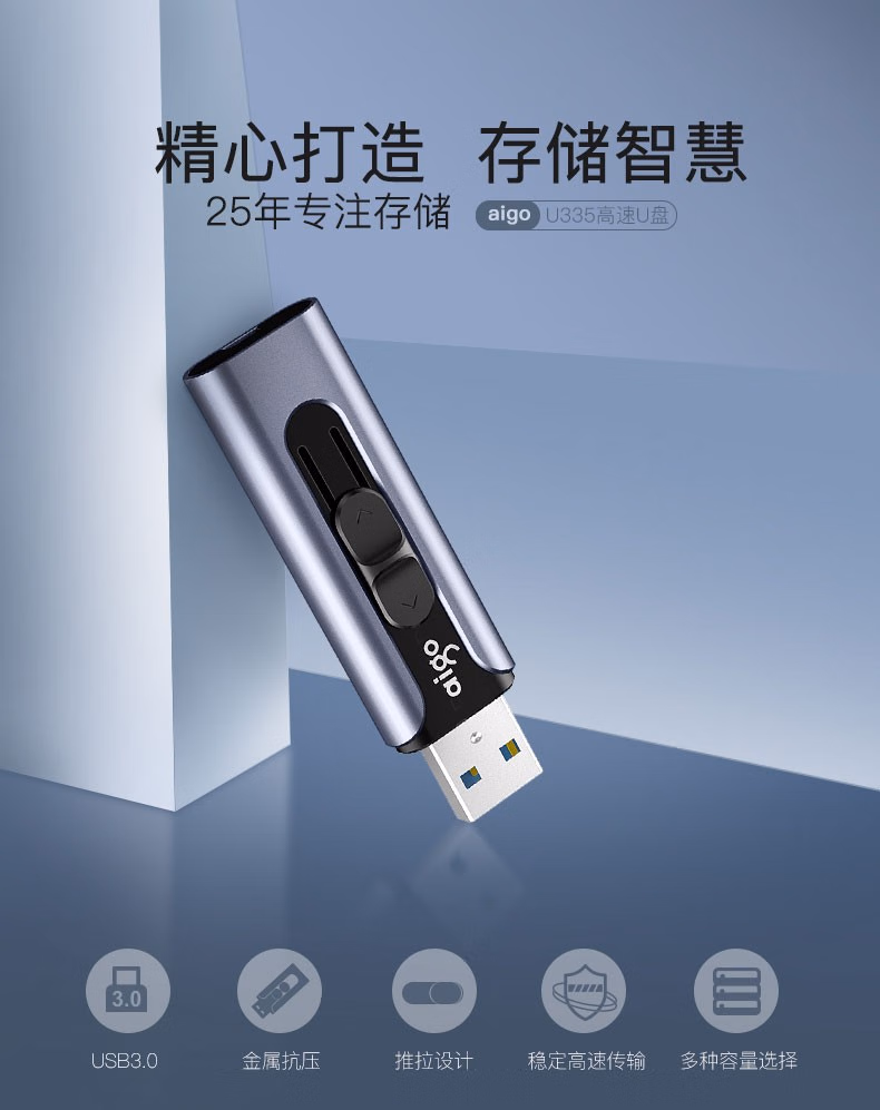 爱国者(aigo) U335 64G USB3.0 电脑U盘/优盘 (计价单位:个) 蓝色