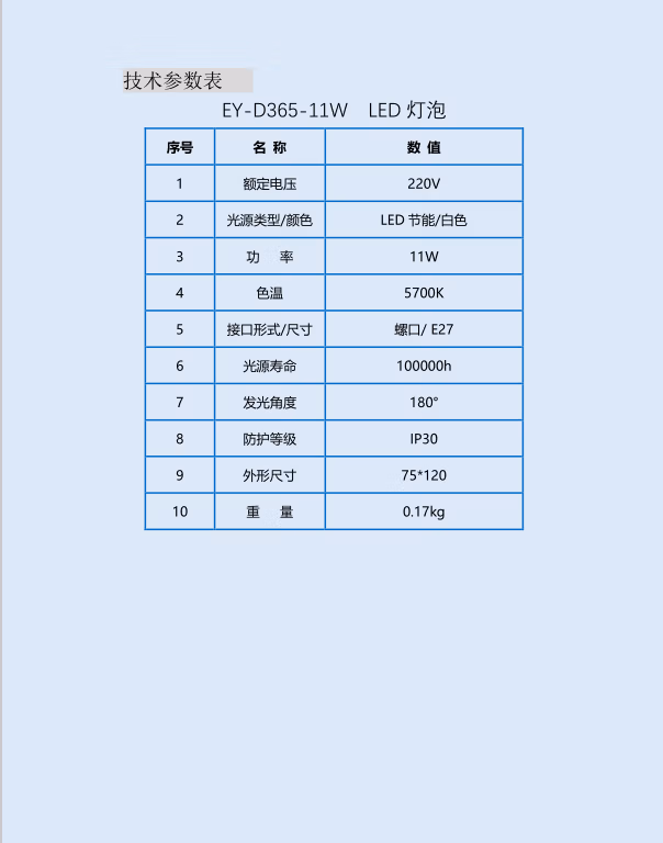 鄂远 EY-D365 11 IP30 5700K 灯泡 1.00 个/盏 (计价单位:盏) 白色