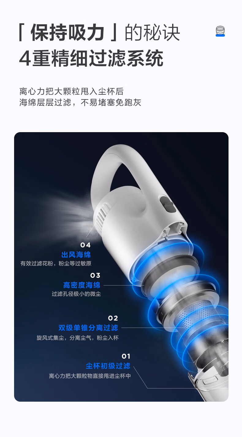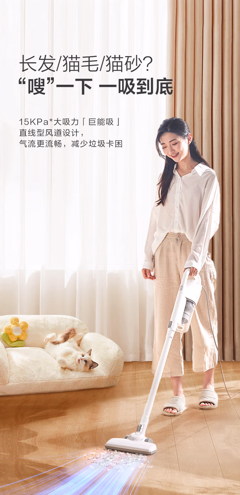 • 特色功能:一键倒尘,毛发防缠绕