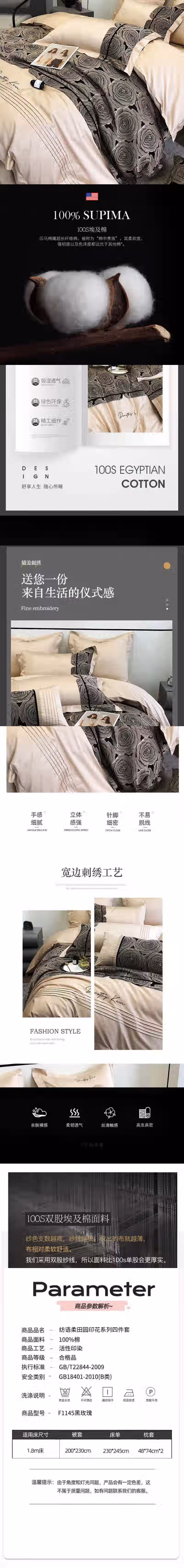 纺语柔 F1145 四件套 床上套件 (计价单位:套) 黑玫瑰