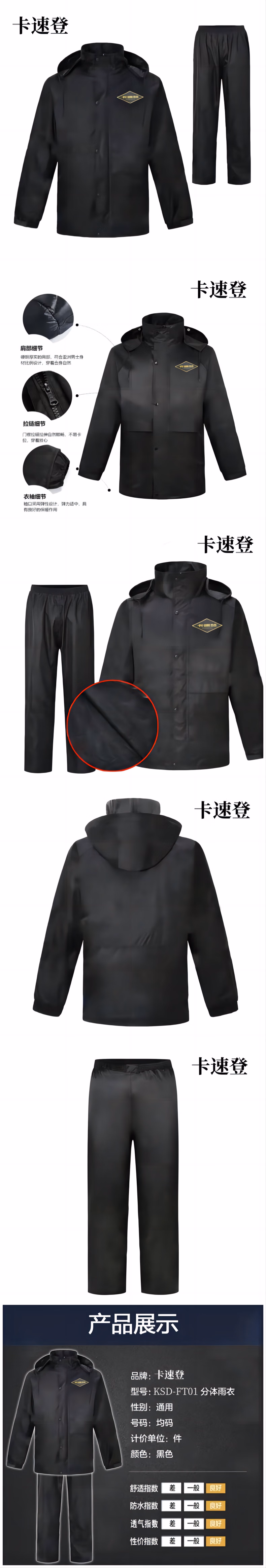 卡速登 KSD-FT01连帽分体式 均码 雨衣 (计价单位:件) 黑色