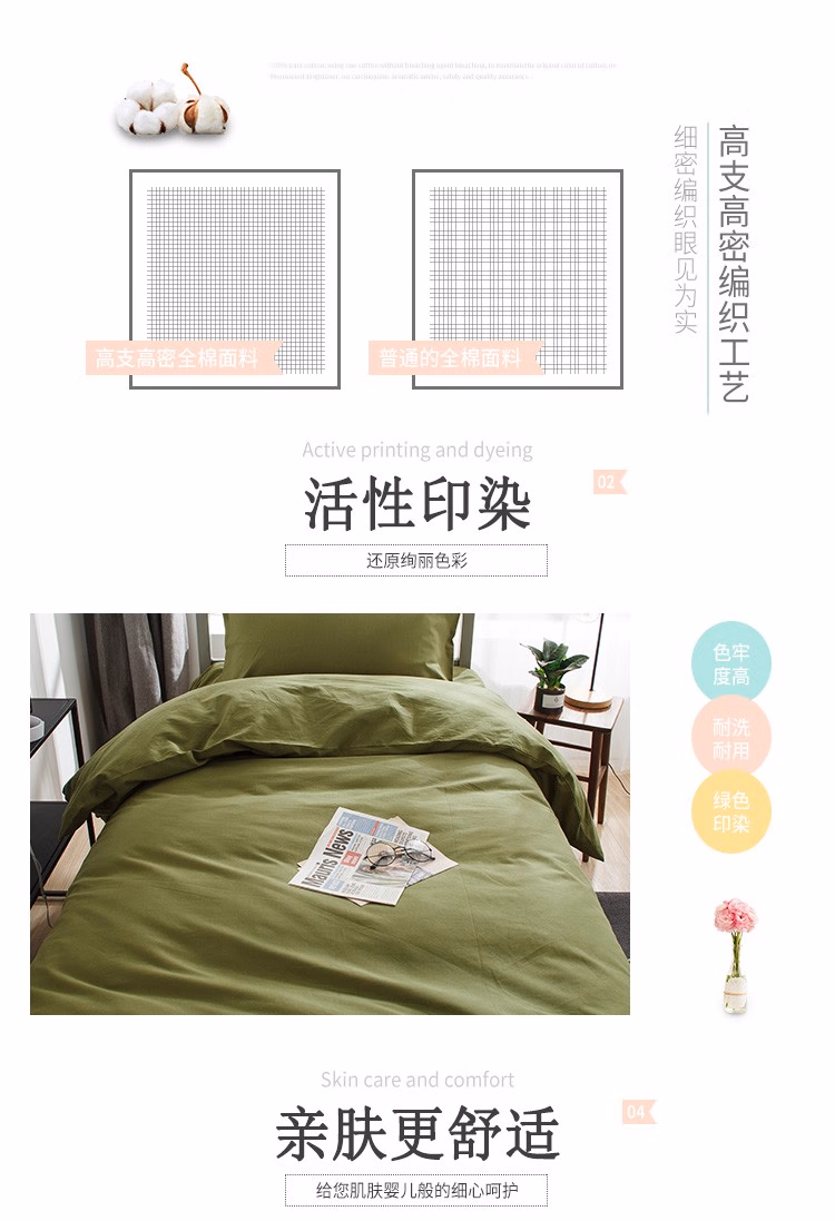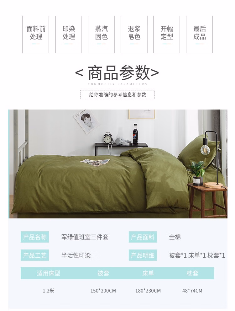 婵思 CJD0220115 150*200cm 全棉 军绿 值班室 三件套 (计价单位:套) 军绿色