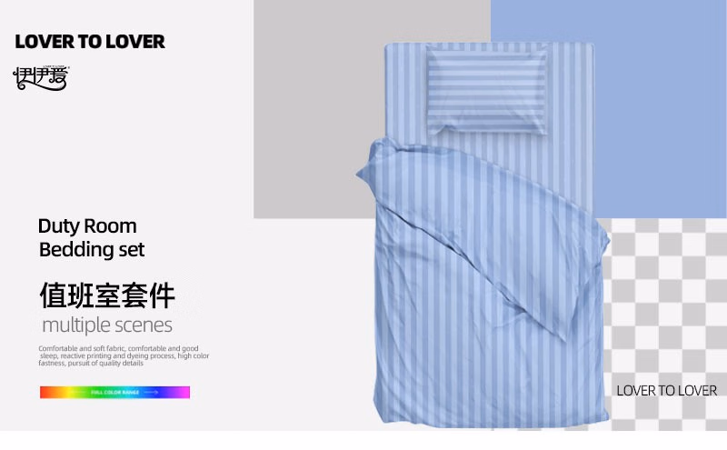 伊伊爱 TJ0JD02101174 /200*230cm 酒店公寓值班室40S贡缎蓝色锻条四件套 (计价单位:套) 蓝色缎条