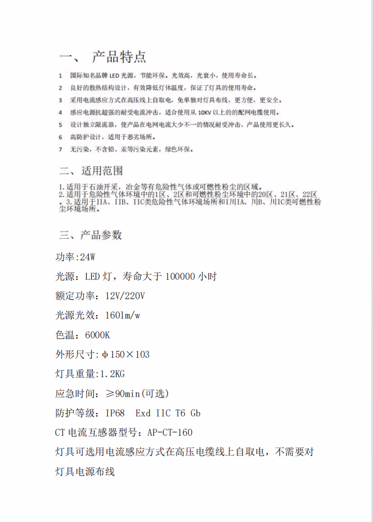 炽翼 KLE1020 IP68 6000k 电流感应自取电 LED灯具 黄 防爆灯 (计价单位:盏) 黄色