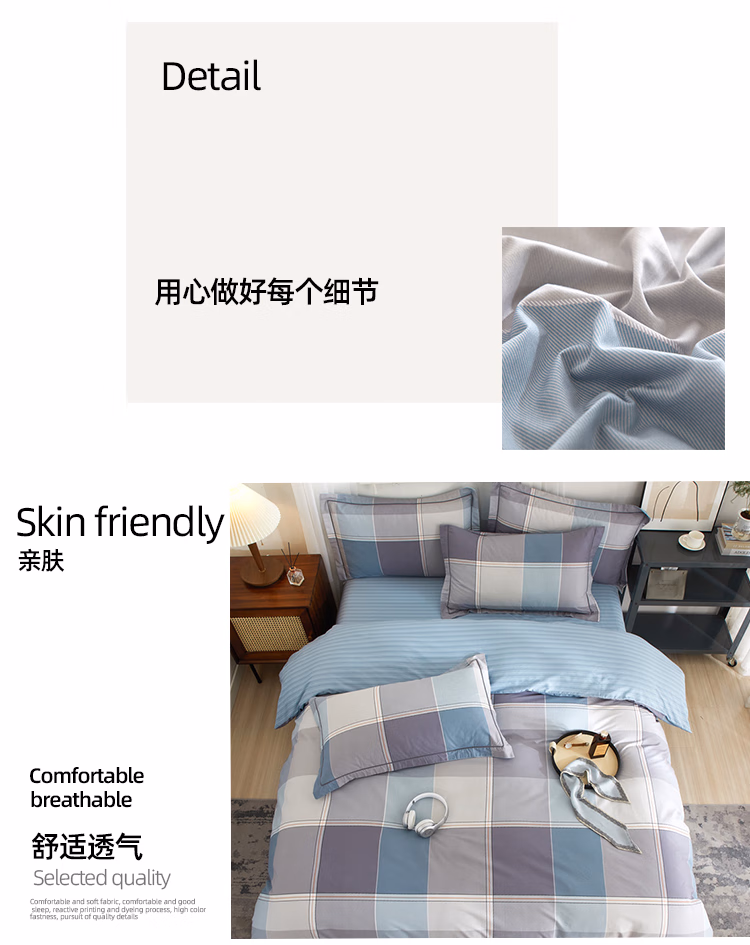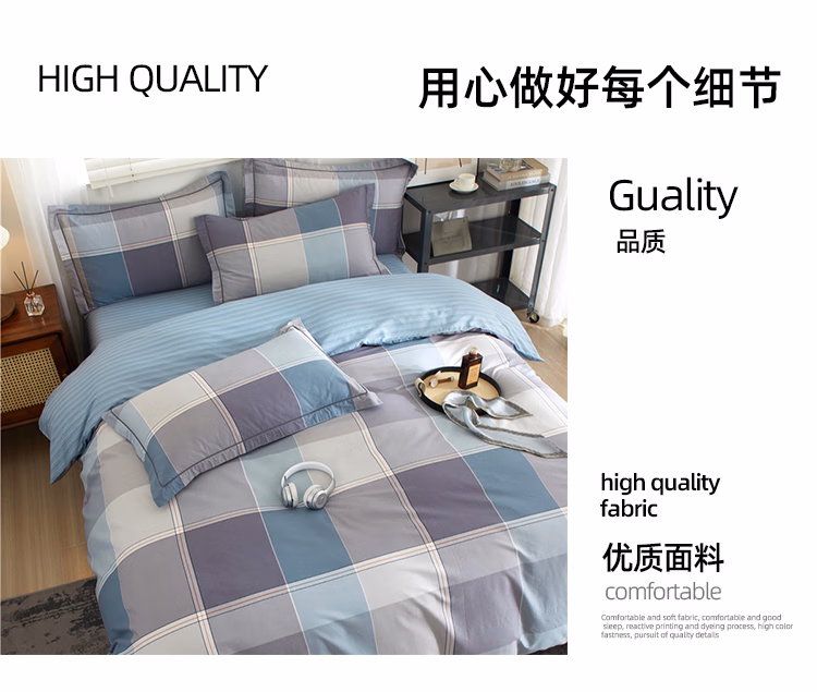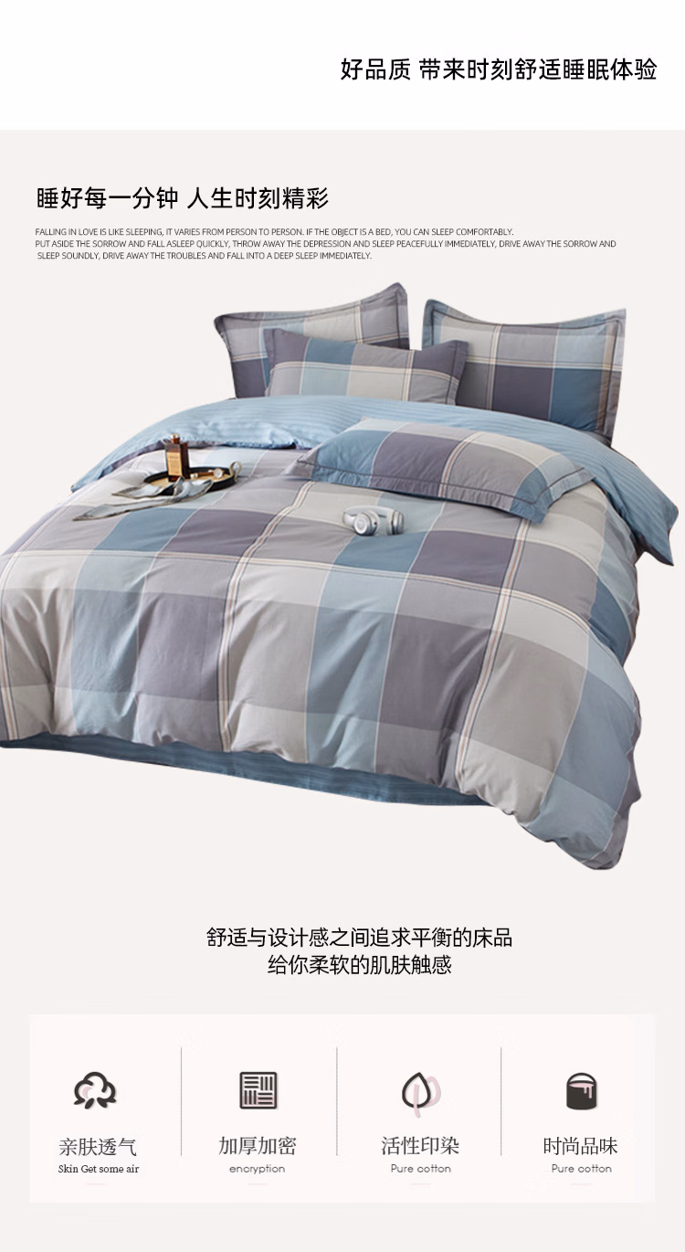 伊伊爱 TJ0SXM2401175 200*230cm 全棉斜纹加密条格四件套 床上套件 (计价单位:套) 嘉宇格-蓝