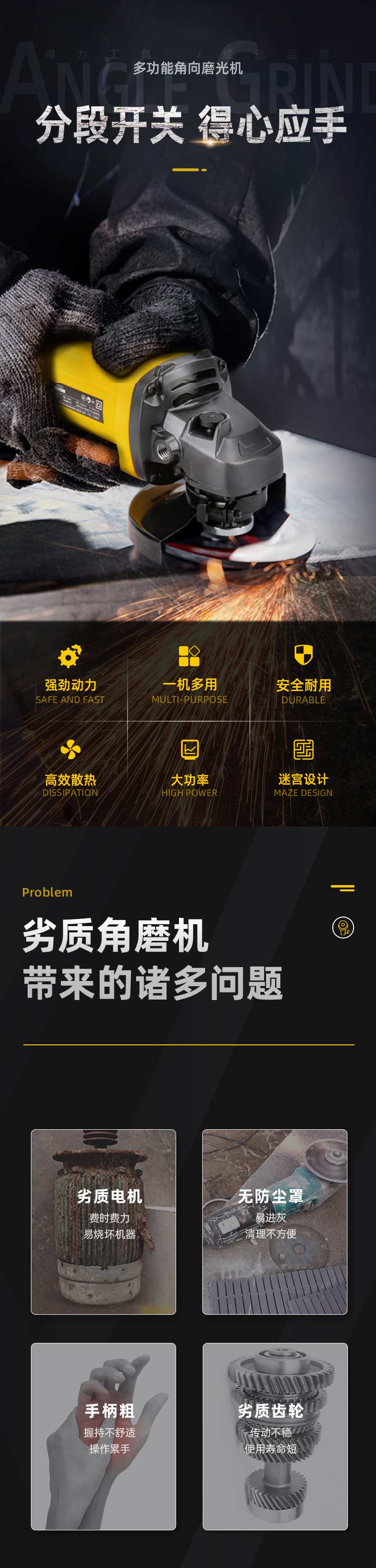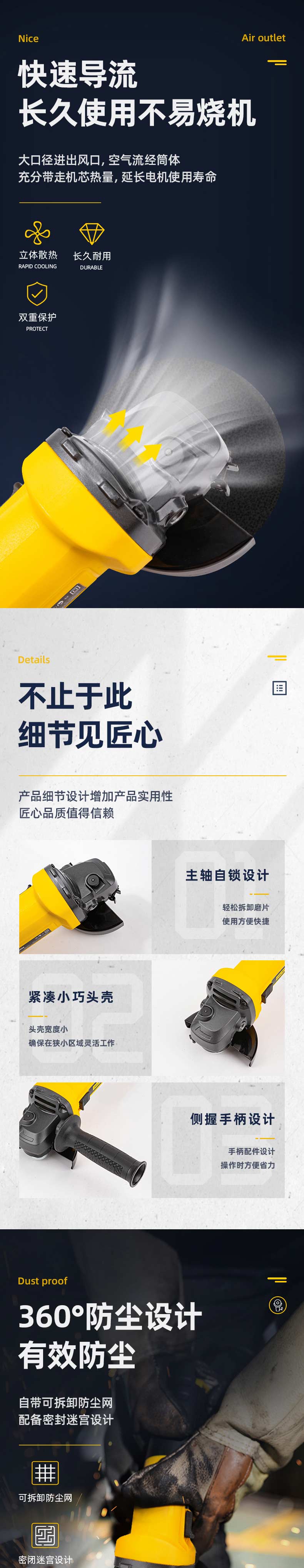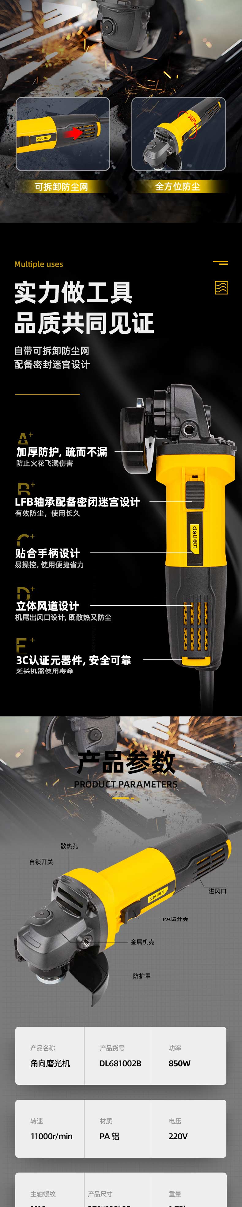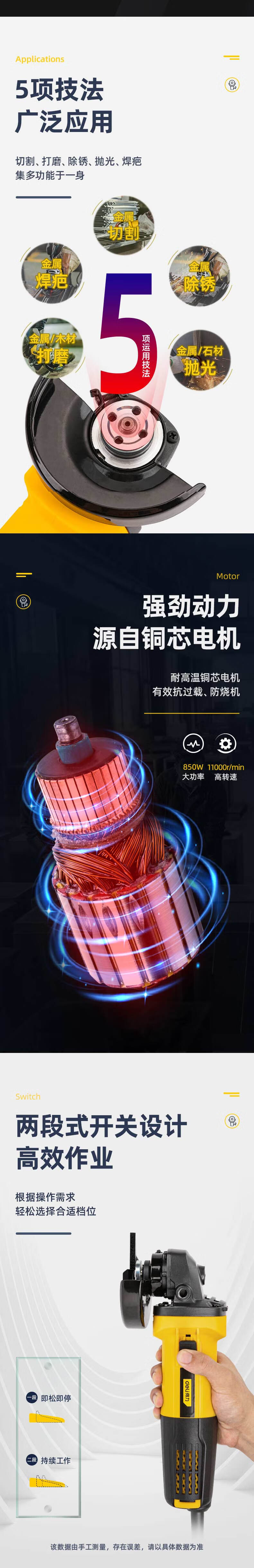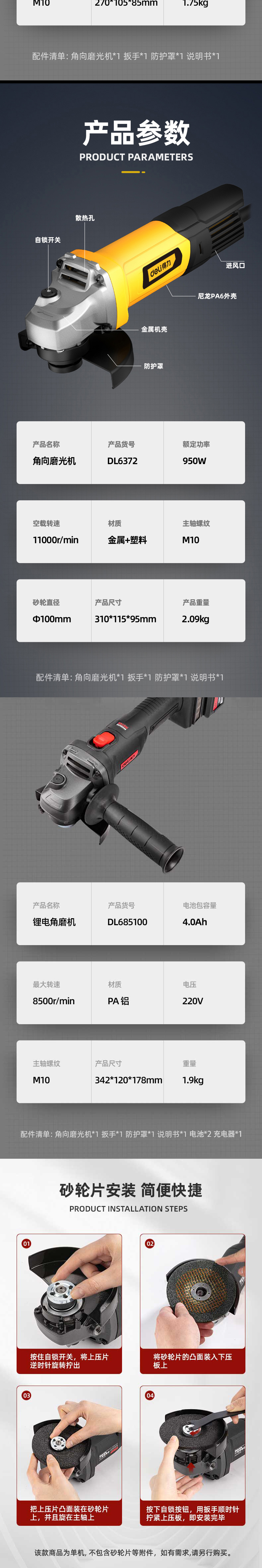 得力(deli) 950W角磨机多功能切割机角向磨光机手磨机打磨机后置开关抛光机 DL6372 单位:台